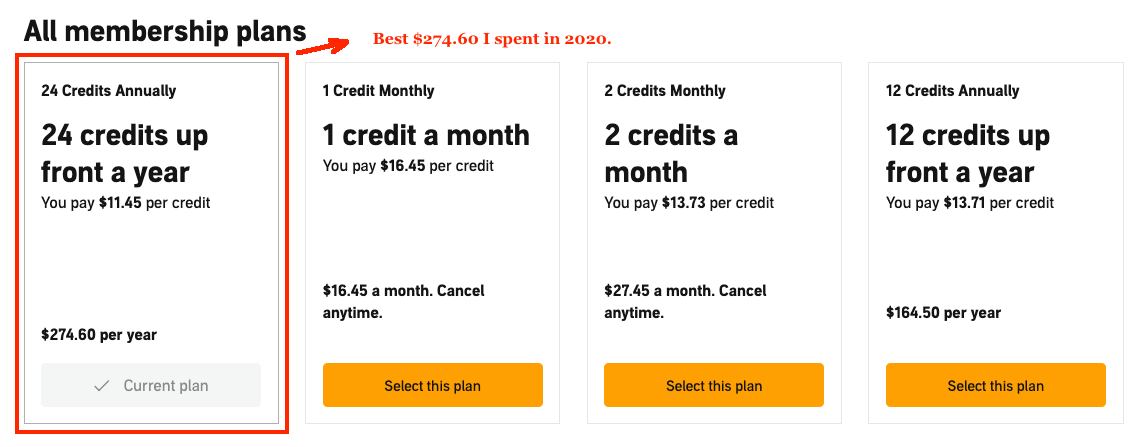 Given that I had gradually increased my reading speed on Audible to 2x speed, one credit a month would not suffice. Naturally the biggest volume plan was cost effective and almost guaranteed hitting my target of 26 books.